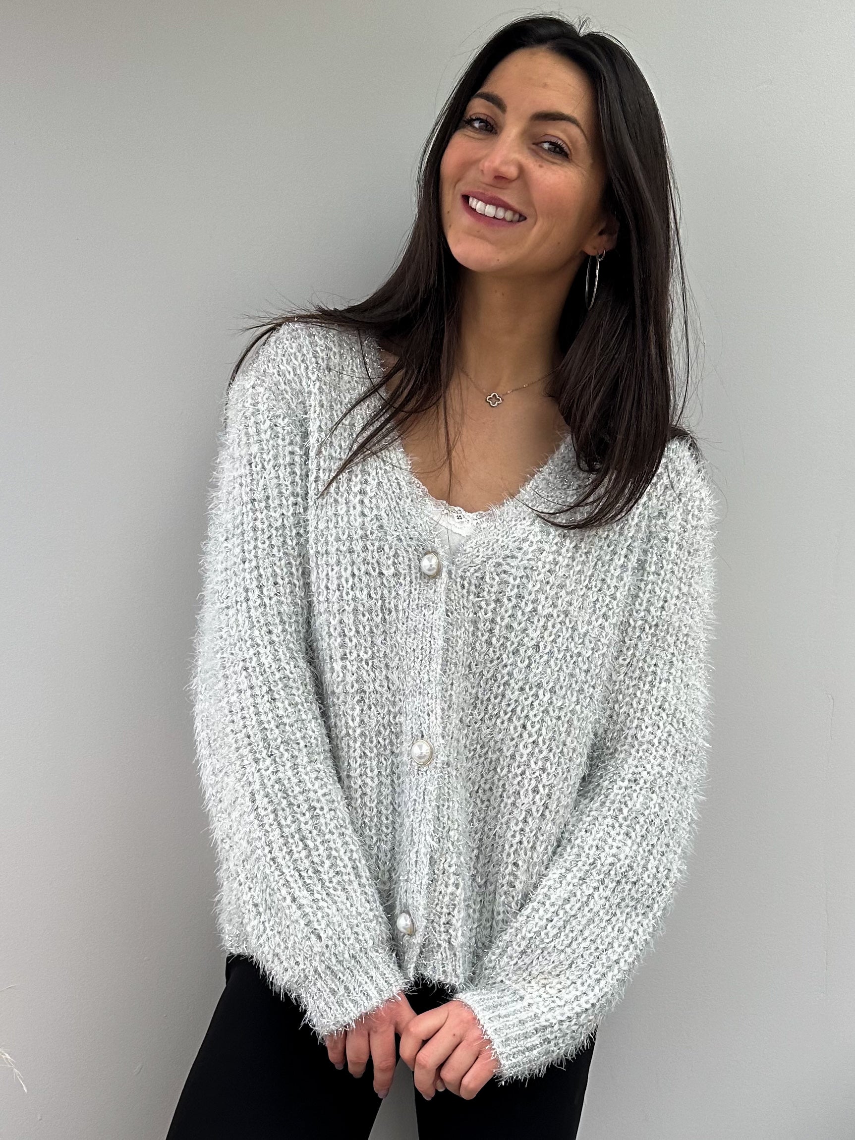 - Le gilet se ferme avec 3 jolis boutons nacrés.