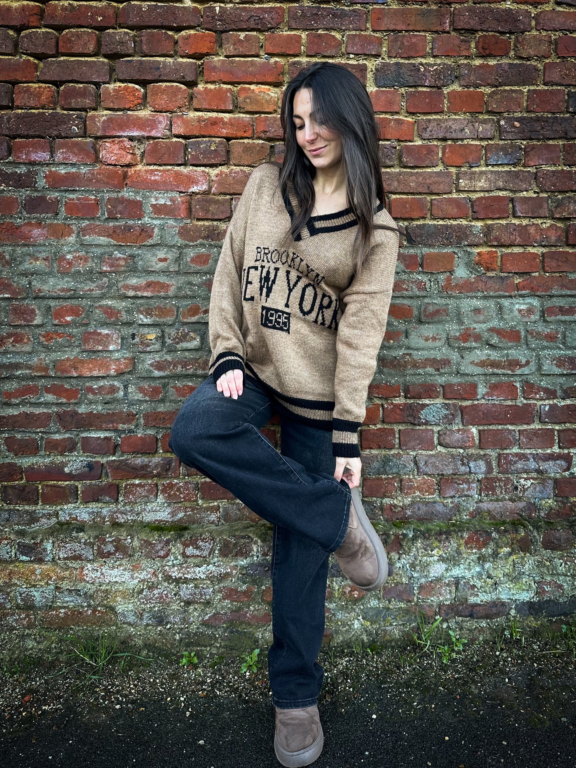 Plongez dans l’esprit campus avec ce pull inspiration université américaine. Son col rayé et son inscription emblématique “New York Brooklyn 1995” lui confèrent un charme rétro et sportif. Confortable et stylé, c’est le parfait allié pour un look casual tendance, tout en douceur.
