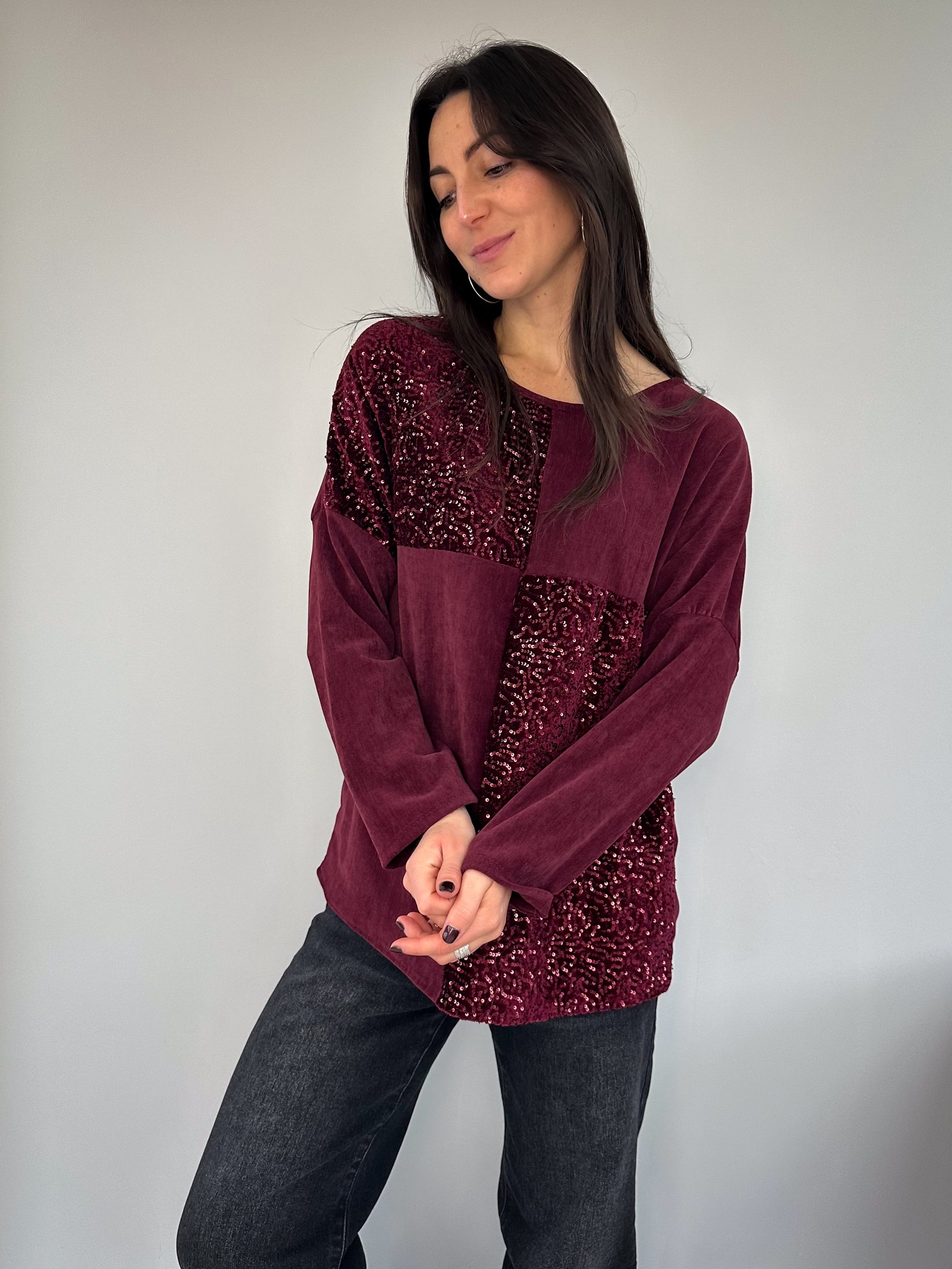Ce pull à sequins effet velours allie douceur et éclat discret. Ses sequins ton-sur-ton apportent une brillance élégante, parfaite aussi bien pour le quotidien que pour les fêtes.